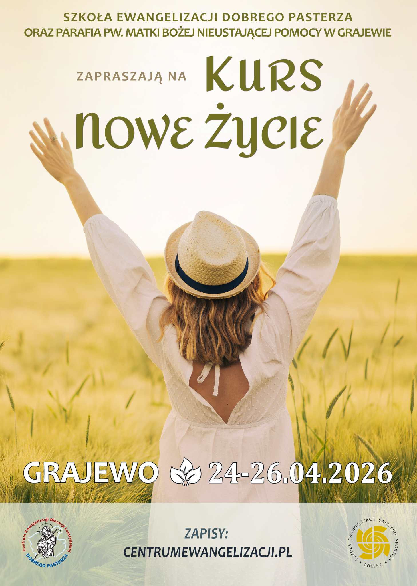 Rozpoczęcie: w piątek 24.04.2026 r. o godz. 18:00 Mszą Świętą w kościele pw. MB Nieustającej Pomocy w Grajewie (ul. Wojska Polskiego 98). Bezpośrednio po Mszy Św. przenosimy się do Domu Katolickiego, gdzie nastąpi rejestracja uczestników i dalsza część spotkania. Jeśli z różnych powodów nie możesz uczestniczyć we Mszy Świętej, prosimy o przybycie bezpośrednio do Domu Katolickiego na godz. 18:45.